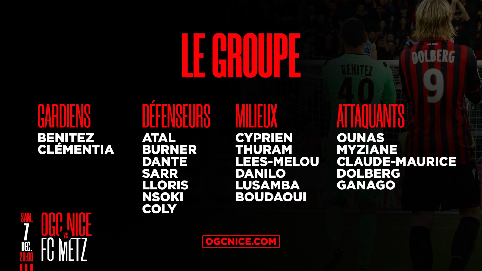 Patrick Vieira vient de dévoiler le groupe retenu pour affronter le FC Metz ce samedi (coup d'envoi à 20h).