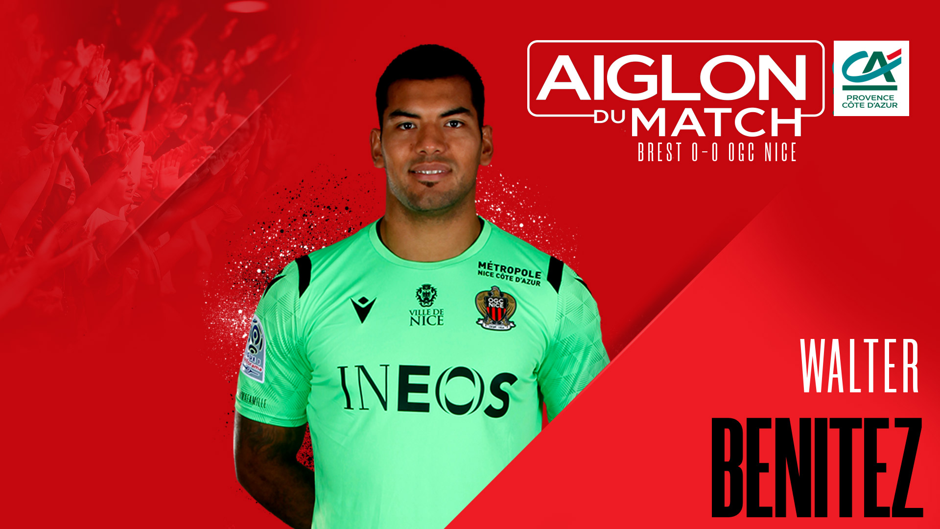 Il serait réducteur d'évoquer uniquement les deux coups de main apportés par ses montants (34', 90+3'). Si les Niçois ont préservé leur cage inviolée pour la 2e fois de la saison, ils le doivent aussi aux interventions décisives de Walter Benitez. Après s'être chauffé en captant une tentative de Charbonnier (11'), l'Argentin a dominé Cardona, d'abord sur sa ligne (24') puis en sortant à l'angle de la surface (41'). Au retour des vestiaires, le colosse a su rester concentré pour contrer Mendy, après une perte de balle de Sarr (47'), avant de bloquer un tir de Lasne, le dernier cadré par les Finistériens (51'). « Les deux gardiens ont fait un très bon match » a commenté Lees-Melou, qui n'a pas oublié les 7 parades réalisées par Larsonneur de l'autre côté du terrain.