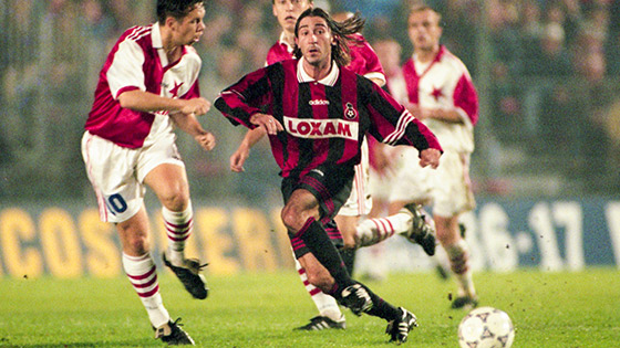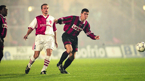 Il arrive que l’oxygène dépende de l’électricité. En cet automne 1997, le peuple rouge et noir quiert la seconde pour respirer le premier. Dans un début d’exercice en dents de scie, les deux se fuient souvent. La D1 semble loin. Relégué, le Gym perd peu, gagne quelques fois, partage souvent les points. La calade est dure à avaler, ce qui rend la montée d’adrénaline rare et désirée. Cette montée porte un nom : Europe. Après avoir remporté la Coupe de France au printemps d’avant, les Rouge et Noir se retrouvent en Coupe des Vainqueurs de Coupes, bien qu’en D2. Plaisir et souffrance. L’air au-delà des frontières booste néanmoins les coéquipiers de Vandecasteele. Après avoir sorti les Ecossais de Kilmarnock au 1er tour, ils se retrouvent au faîte de leur saison avant de recevoir le Slavia, grâce à un succès contre Beauvais (2-0) qui les envoie à la 4e place du championnat - ce qui restera leur meilleur classement de l’exercice. Le Slavia, « un autre numéro » selon Silvester Takac.