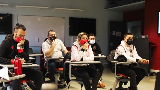 Ce mardi, une délégation de la section féminine de l’OGC Nice s’est rendue à l’IAE de Nice. Face aux étudiants des Métiers du Sport, présents en visioconférence, ils ont échangé autour de travaux établis sur la thématique de la valorisation du football féminin.