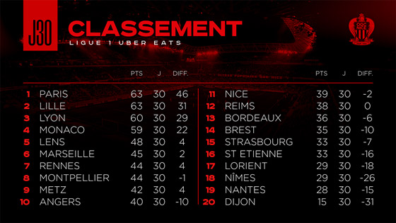 Top départ de la dernière ligne droite de la saison ce samedi ! Voici le programme de la 31e journée de L1, lors de laquelle les Aiglons se déplaceront à Nantes avec l'ambition de retrouver la première partie de tableau.