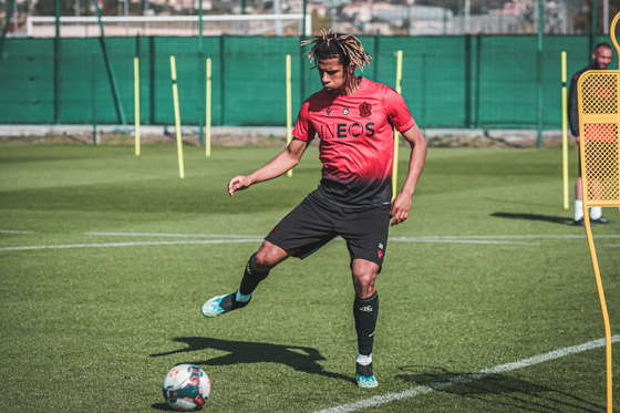 Après avoir joué 90 minutes avec l'équipe de France U20 samedi face au Havre, Khéphren Thuram, buteur à l'aller face à Nantes, était présent avec ses coéquipiers...
