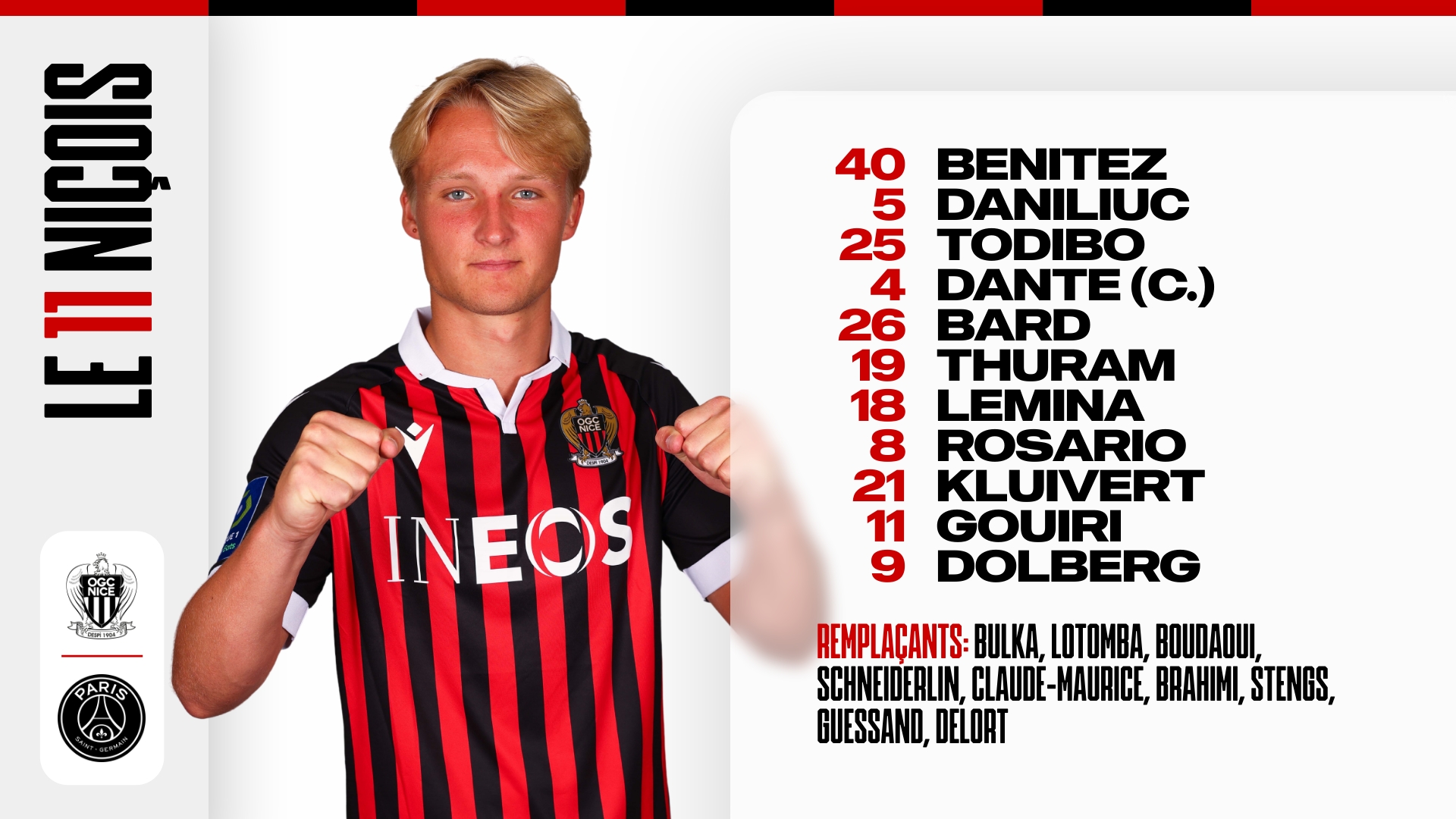 Les remplaçants : Donnarumma, Kimpembe, Dagba, Mendes, Gueye, Simons, Michut, Draxler, Icardi.