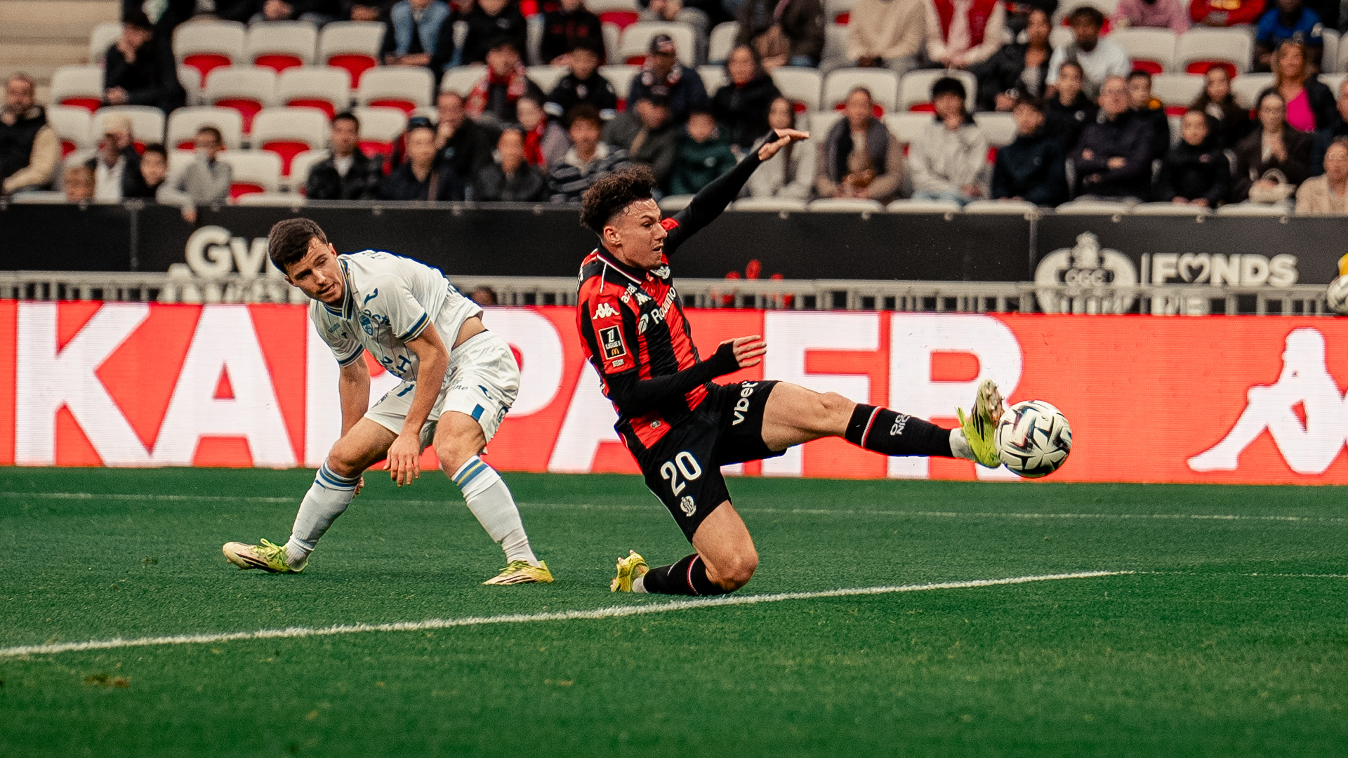 Suffisant pour s'envoler vers une première victoire dans l'enceinte de la Plaine du Var en Ligue 1 en 2026 ? Malheureusement non, puisque Lorient a de nouveau réduit l'écart sur pénalty par l'intermédiaire de Bamba Dieng (3-2, 67e). Un énième coup dur à encaisser, d'autant que le contact de Clauss sur la jambe de Cadiou semblait léger.
